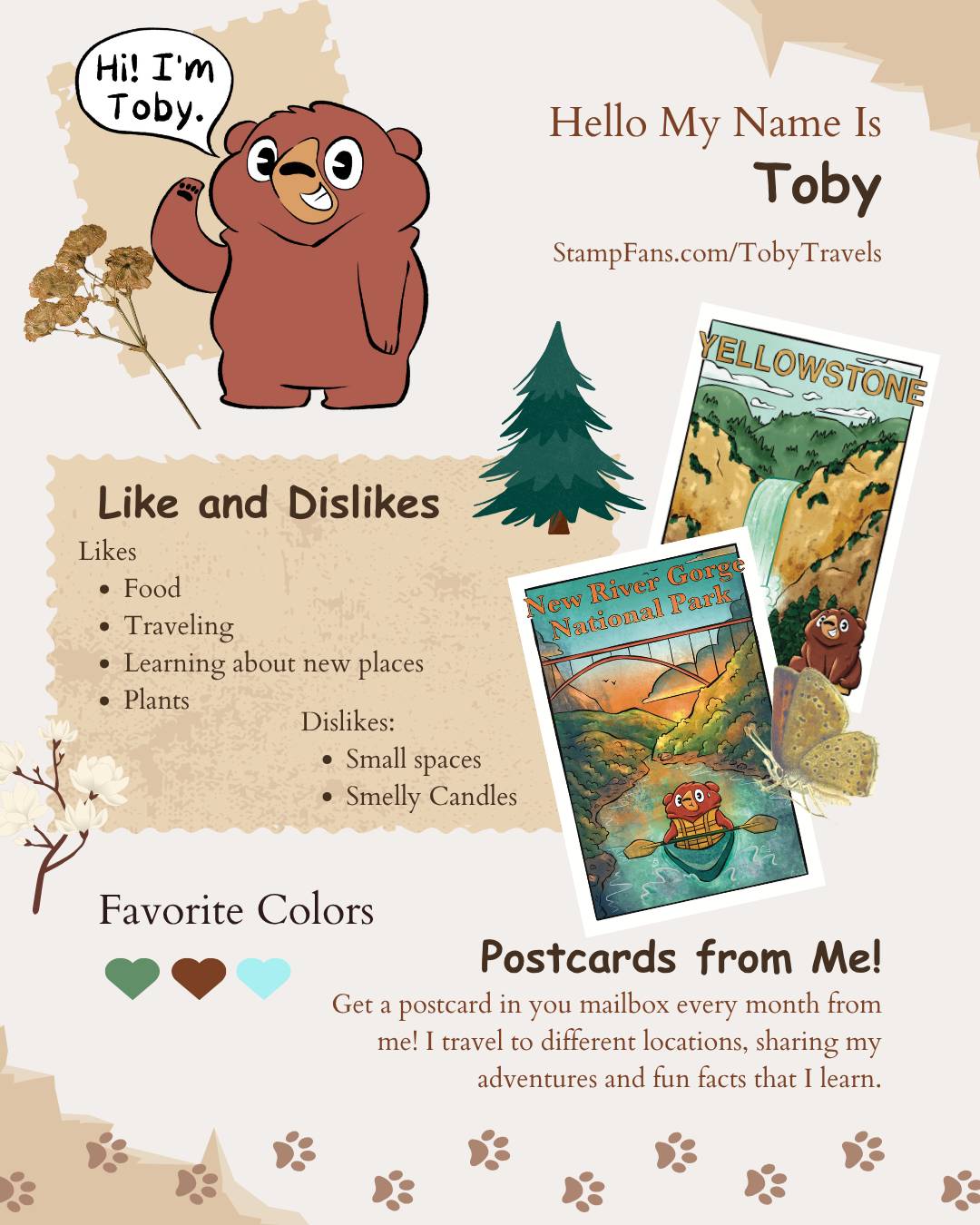 Toby is a chubby little bear who loves to travel. And he'd love to share his adventures with you!